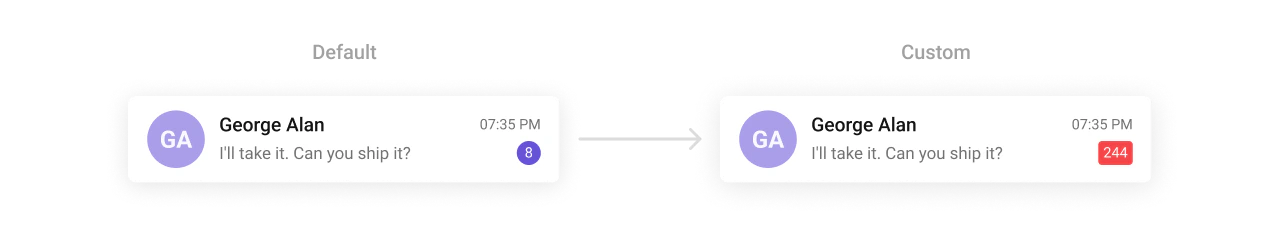 TheCometChatBadge Component displays notifications or counts, such as unread messages. It can be styled for background colors, border radius, text size, and colors, allowing you to create visually distinct indicators for different notifications.