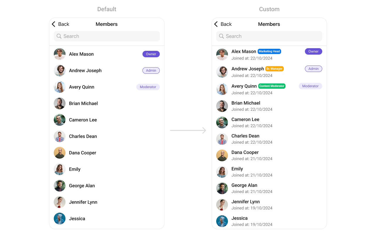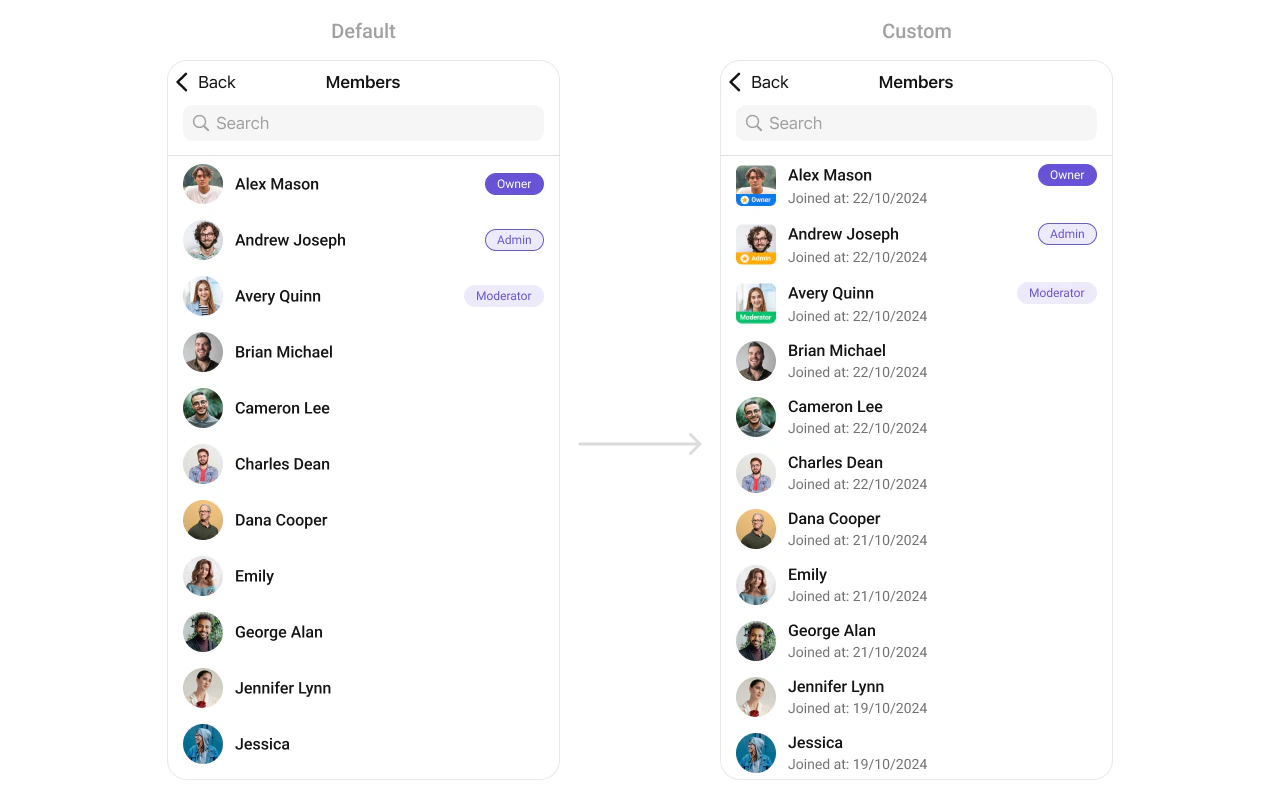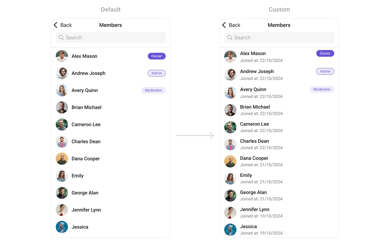 - You can customize the subtitle view for each GroupMembers item to meet your requirements