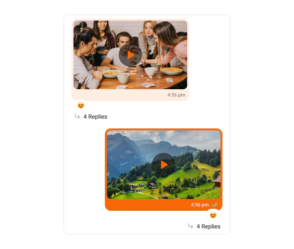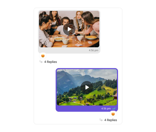 Video bubbles display messages with video clips. The following code snippet shows how customize the Video message bubble:
