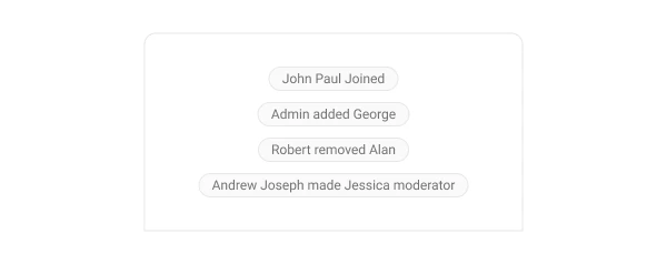 Action bubbles provide a customizable interface for displaying a variety of actions, such as group actions, within a chat. The following code snippet shows how customize the action message bubble:
