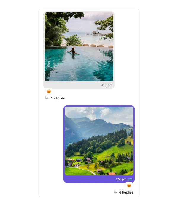 Image bubbles display messages with images. The following code snippet shows how customize the Image message bubble:
