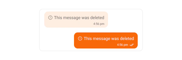Delete bubbles displays messages that have been deleted by the sender. These indicate the message removal within the chat interface. The following code snippet shows how customize the delete message bubble: