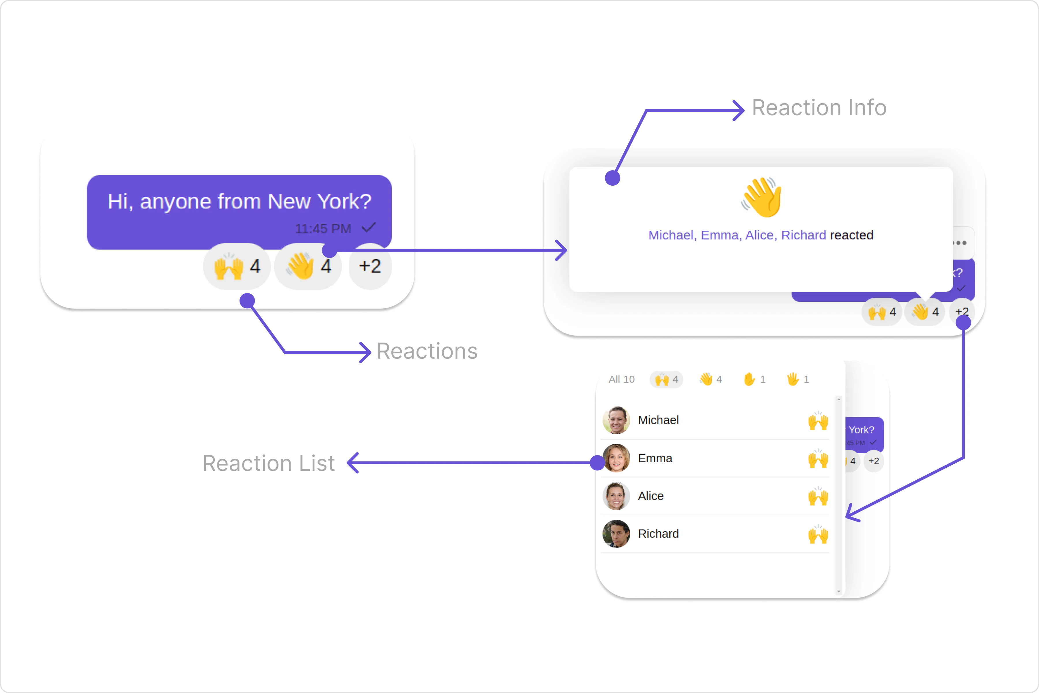 To fit your app’s design requirements, you can customize the appearance of the Reaction component. We provide exposed methods that allow you to modify the experience and behavior according to your specific needs.